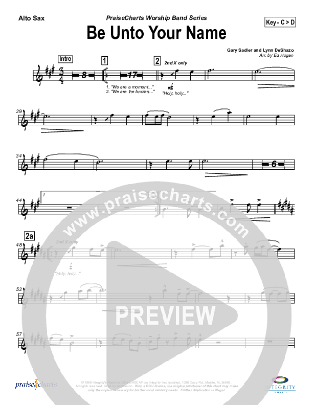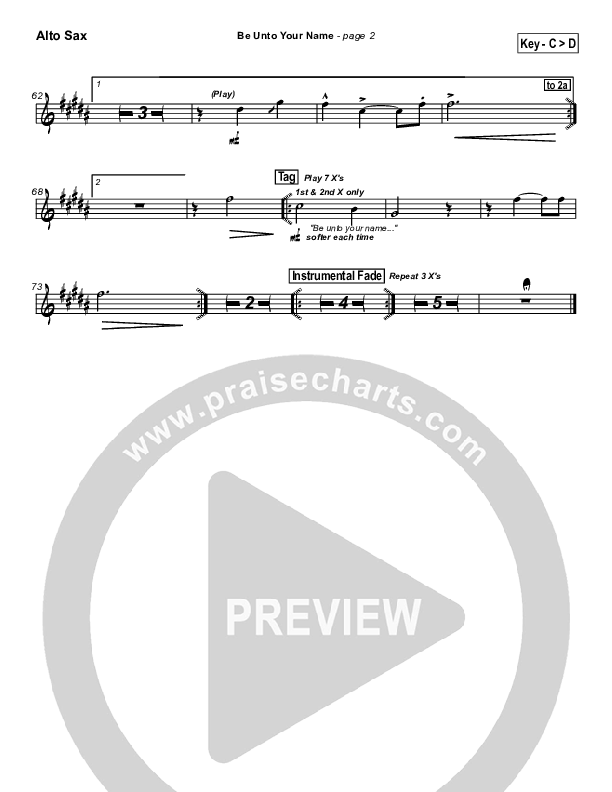 Download the AltoSax sheet music for Be Unto Your Name by Robin Mark, from the album iWorship: DVD E. This song was arranged by Ed Hogan in the key of Bb, C.