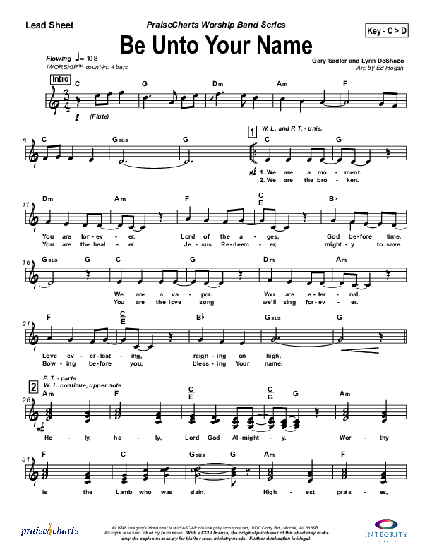 Download the Orchestration for Be Unto Your Name by Robin Mark, from the album iWorship: DVD E. This song was arranged by Ed Hogan in the key of Bb, C.