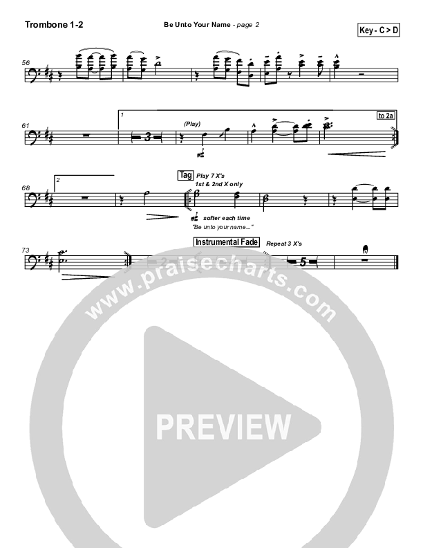 Be Unto Your Name Trombone Sheet Music PDF (Robin Mark)