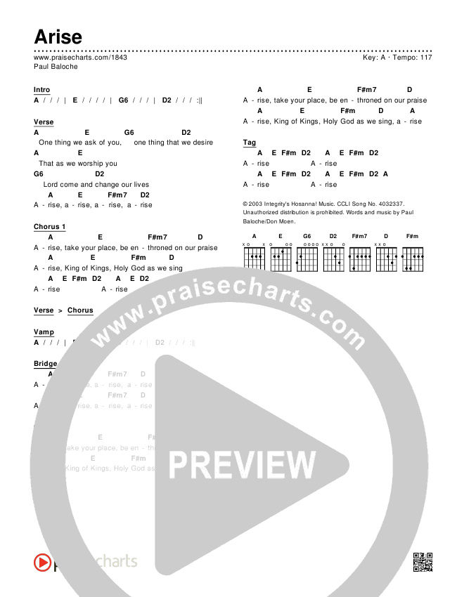 Download the PDF Chord Charts for Arise by Paul Baloche, from the album Offering Of Worship. This song was arranged by Daniel Galbraith in the key of E, F.