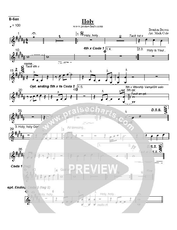 Holy Bari Sax Sheet Music PDF (Brenton Brown)