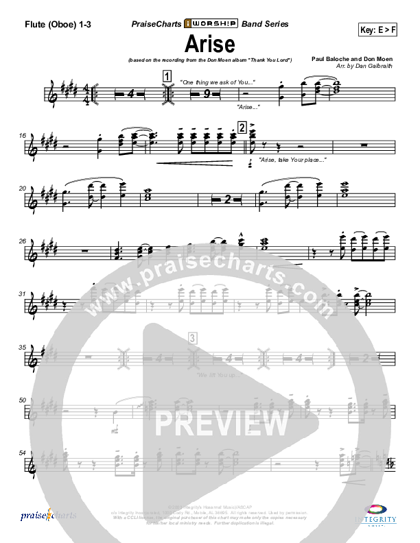 Download the Flute/Oboe sheet music for Arise by Don Moen, from the album Thank You Lord. This song was arranged by Daniel Galbraith in the key of E, Eb.