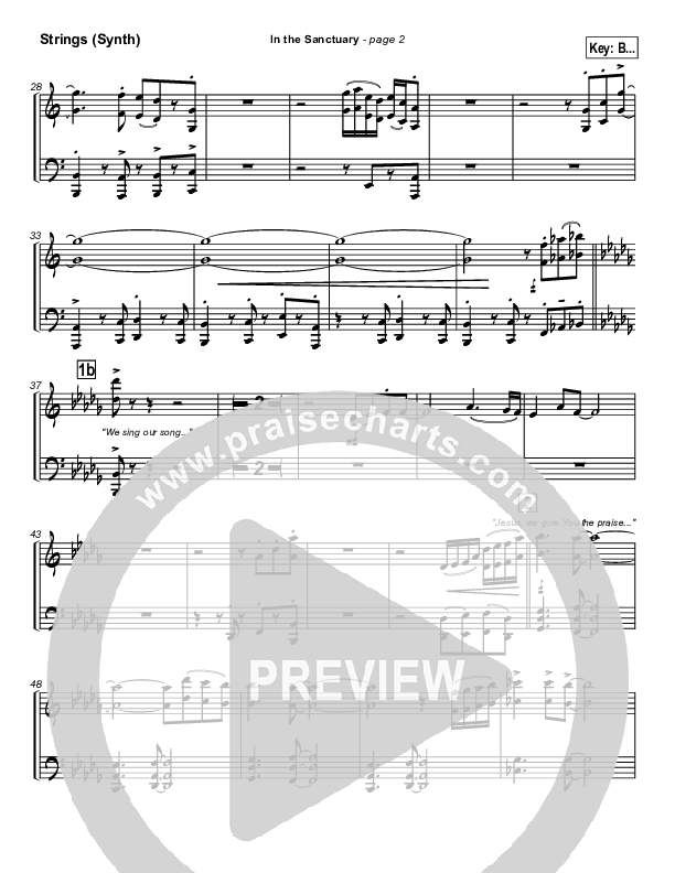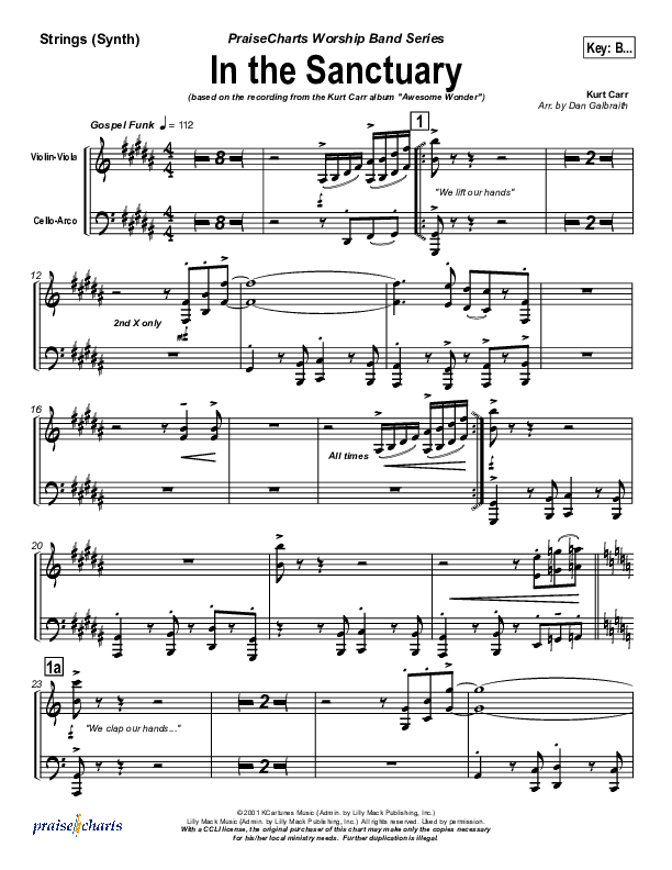 Download the Orchestration for In The Sanctuary by Kurt Carr, from the album Awesome Wonder. This song was arranged by Daniel Galbraith in the key of B, Db.
