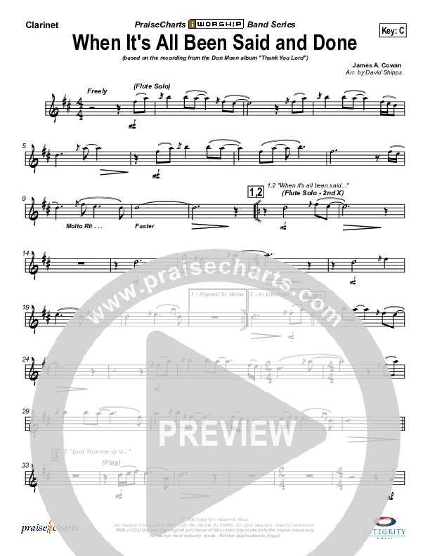 Download the Orchestration for When It's All Been Said And Done by Don Moen, from the album Thank You Lord. This song was arranged by David Shipps in the key of C, D.