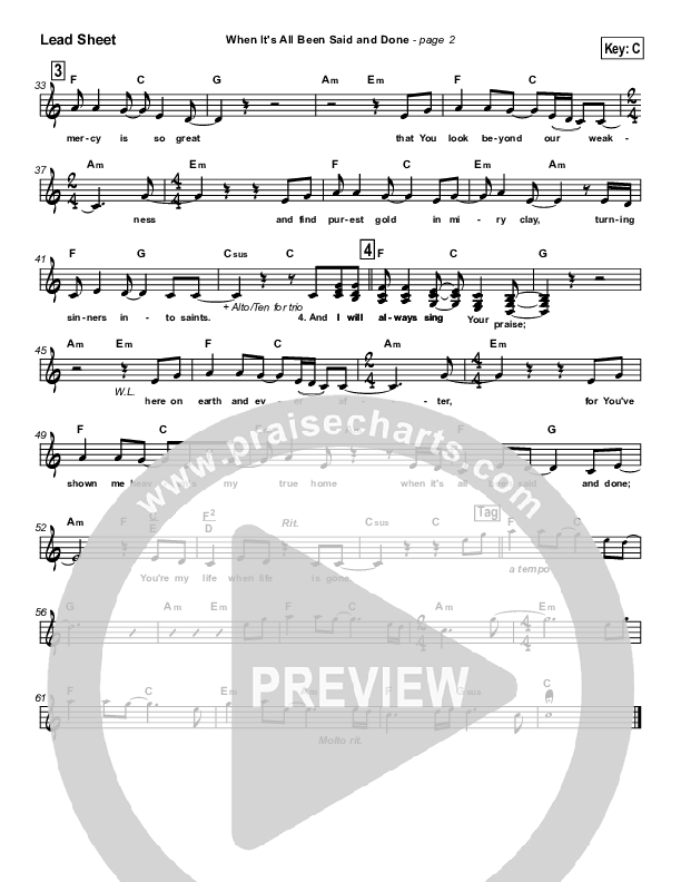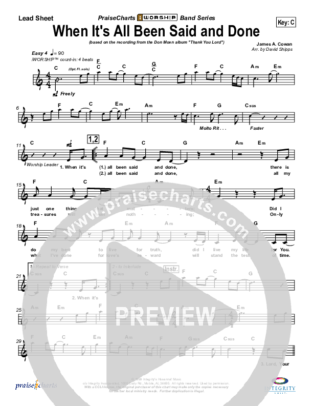 Download the Orchestration for When It's All Been Said And Done by Don Moen, from the album Thank You Lord. This song was arranged by David Shipps in the key of C, D.