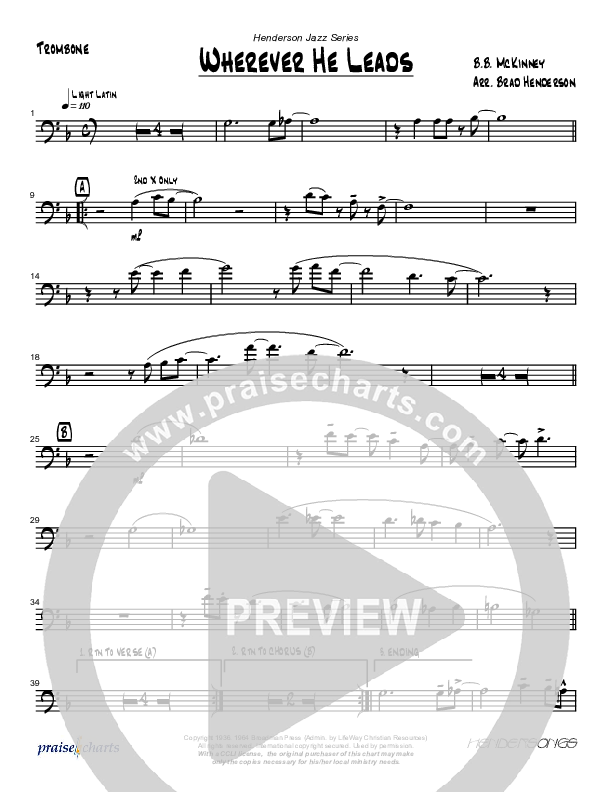 Download the Orchestration for Wherever He Leads I'll Go (Instrumental) by Brad Henderson, from the album Henderson Jazz Series. This song was arranged by Brad Henderson in the key of F.