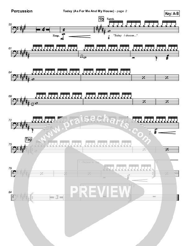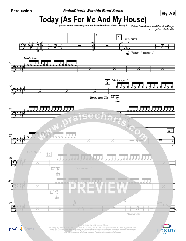 Download the percussion sheet music for Today by Brian Doerksen, from the album Today. This song was arranged by Daniel Galbraith in the key of A, Ab.