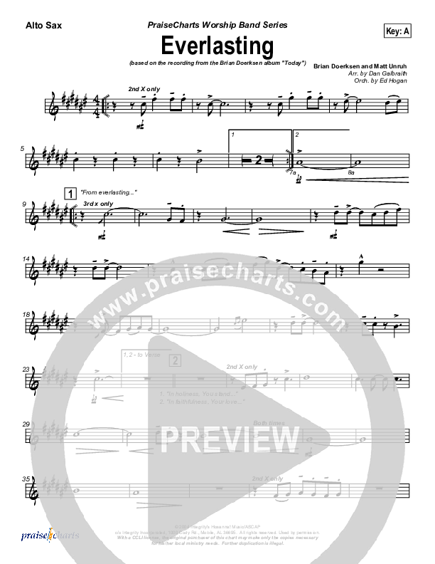 Download the AltoSax sheet music for Everlasting by Brian Doerksen, from the album Today. This song was arranged by Ed Hogan in the key of A, B.