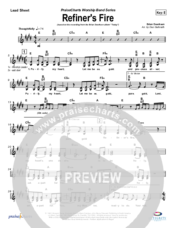 Download the Orchestration for Refiner's Fire by Brian Doerksen, from the album Today. This song was arranged by Daniel Galbraith in the key of E, F.