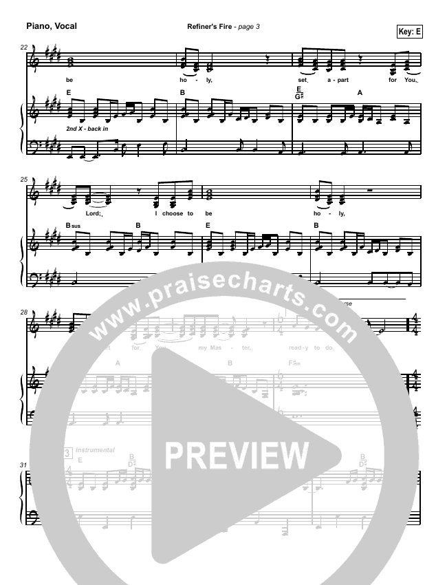 Download the sheet music for Refiner's Fire by Brian Doerksen, from the album Today. This song was arranged by Daniel Galbraith in the key of E, F.