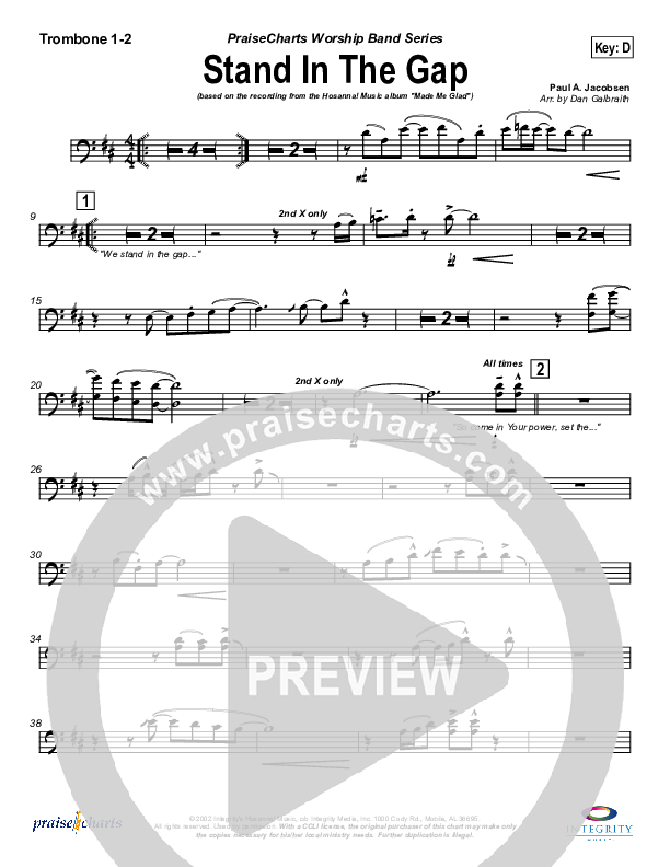 Download the Trombone 1,2 sheet music for Stand In the Gap by Michael Neale, from the album Made Me Glad. This song was arranged by Daniel Galbraith in the key of E.