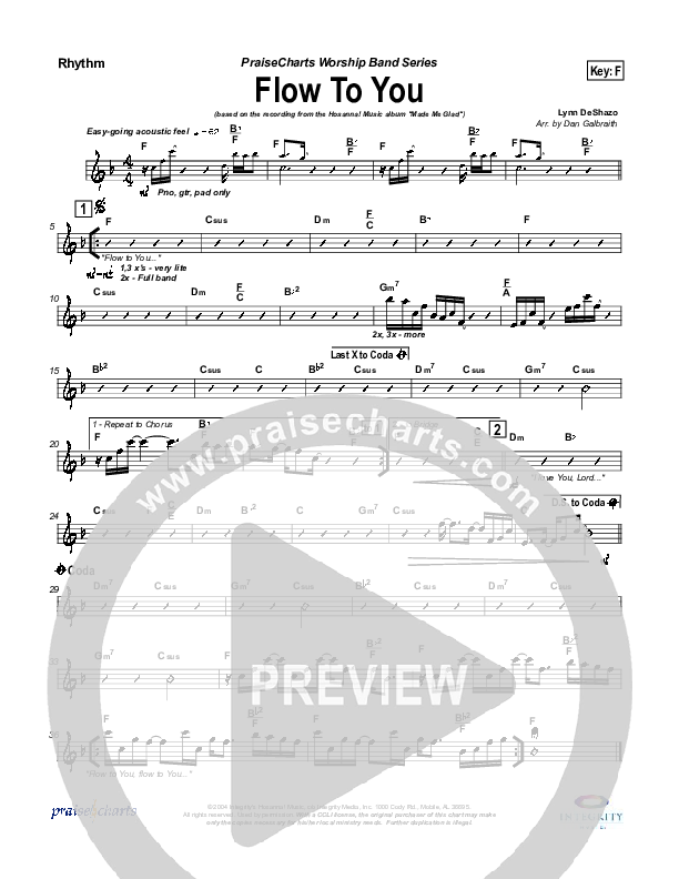 Download the Rhythm Chart for Flow To You by Michael Neale, from the album Made Me Glad. This song was arranged by Daniel Galbraith in the key of G.