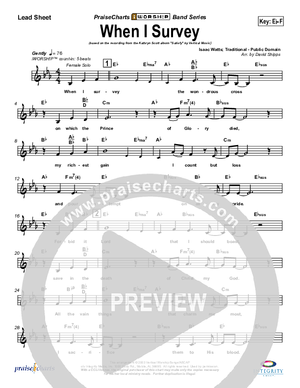 Download the sheet music for When I Survey (The Wondrous Cross) by Kathryn Scott, from the album iWorship: DVD H. This song was arranged by David Shipps in the key of Eb, F.