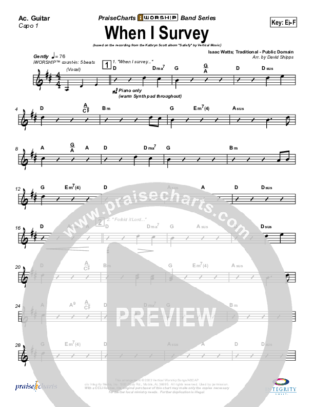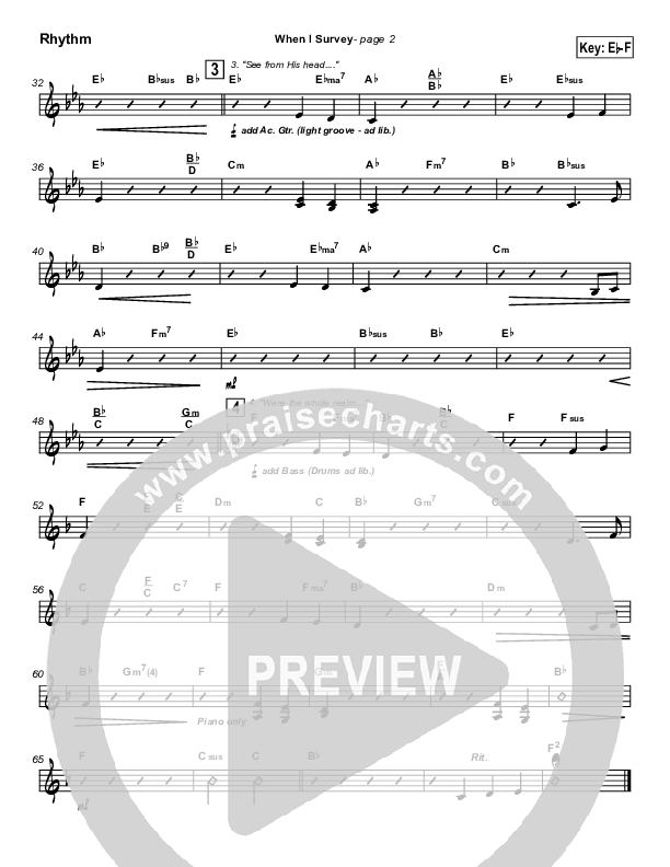 Download the Rhythm Chart for When I Survey (The Wondrous Cross) by Kathryn Scott, from the album iWorship: DVD H. This song was arranged by David Shipps in the key of Eb, F.