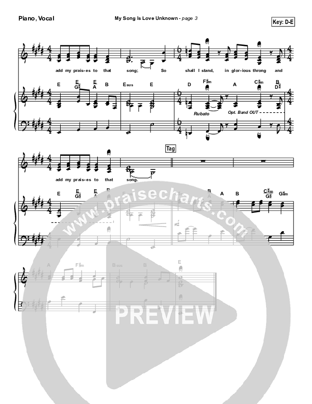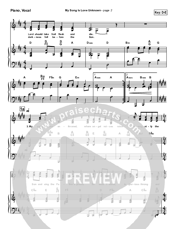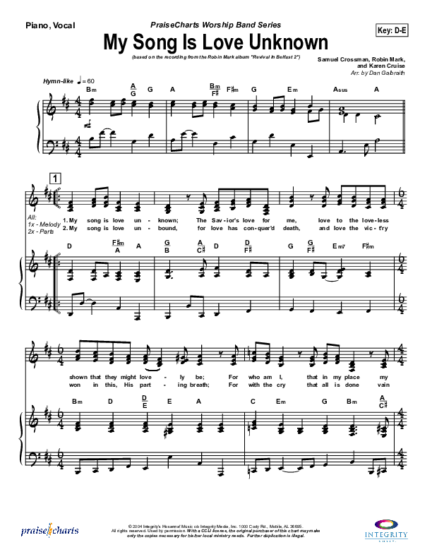 Download the sheet music for My Song Is Love Unknown by Robin Mark, from the album Revival In Belfast 2. This song was arranged by Daniel Galbraith in the key of D, Db.