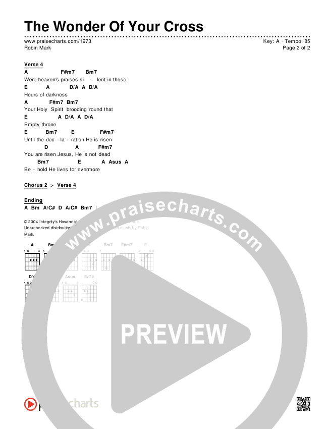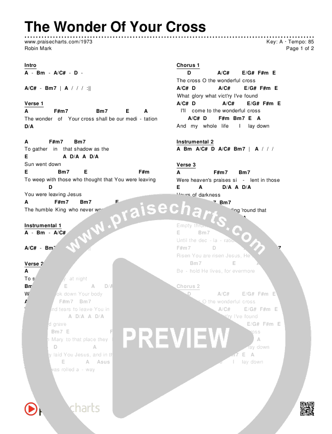 The Wonder Of Your Cross Chords PDF (Robin Mark)