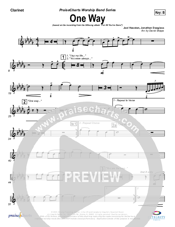 Download the Orchestration for One Way by Hillsong Worship, from the album For All You've Done. This song was arranged by David Shipps in the key of B, Bb.