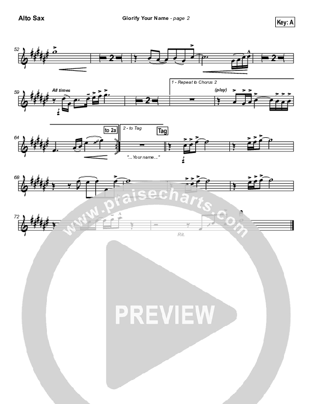 Download the AltoSax sheet music for Glorify Your Name by Hillsong Worship, from the album For All You've Done. This song was arranged by Daniel Galbraith in the key of A, Bb.