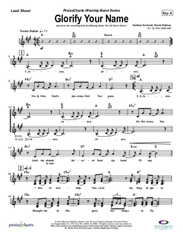 Download the Orchestration for Glorify Your Name by Hillsong Worship, from the album For All You've Done. This song was arranged by Daniel Galbraith in the key of A, Bb.