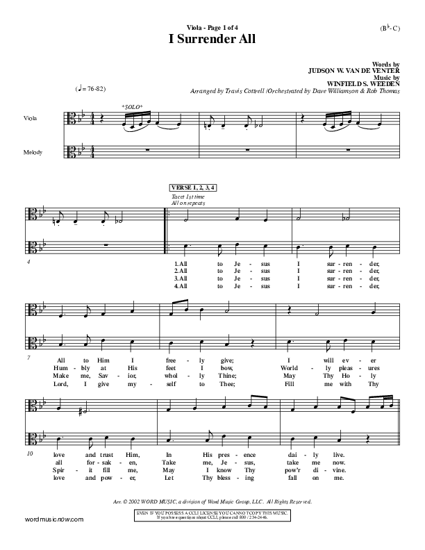 Download the Viola sheet music for I Surrender All by Judson van DeVenter, from the album Word Music Now.