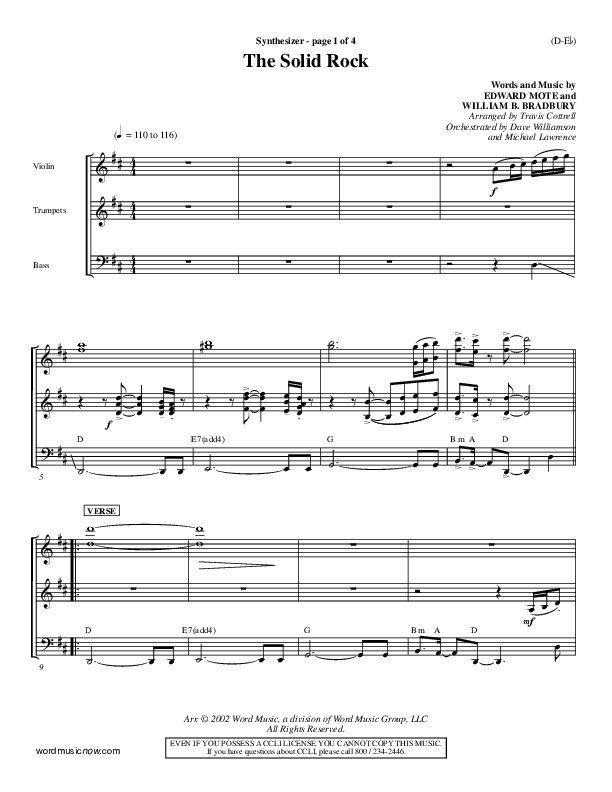 Download the Orchestration for The Solid Rock by Travis Cottrell, from the album Word Music Now. This song was arranged by Dave Williamson / Michael Lawrence in the key of D.