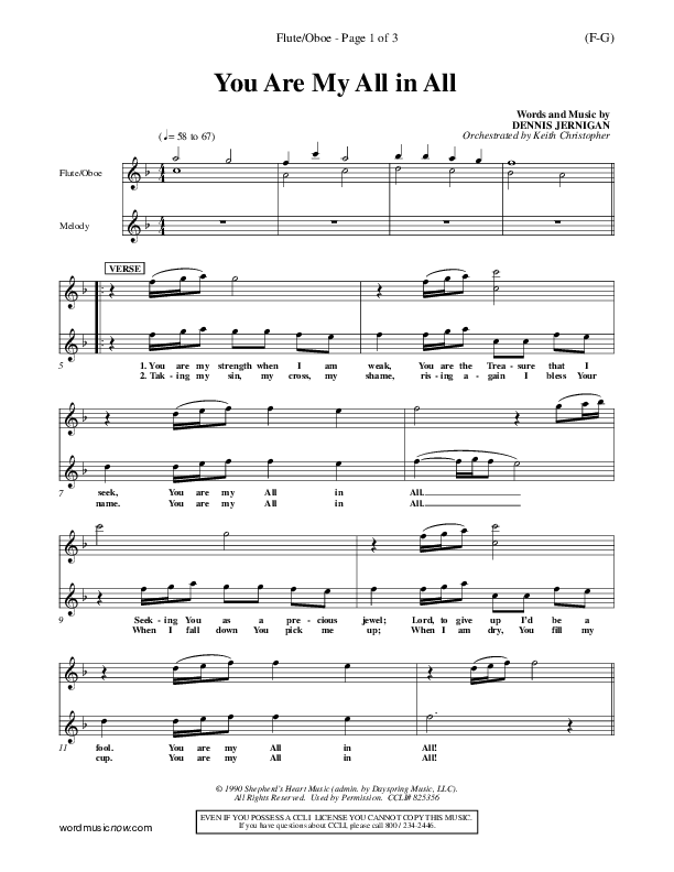 Download the Flute/Oboe sheet music for You Are My All In All by Dennis Jernigan, from the album Word Music Now. This song was arranged by Keith Christopher in the key of E, F.