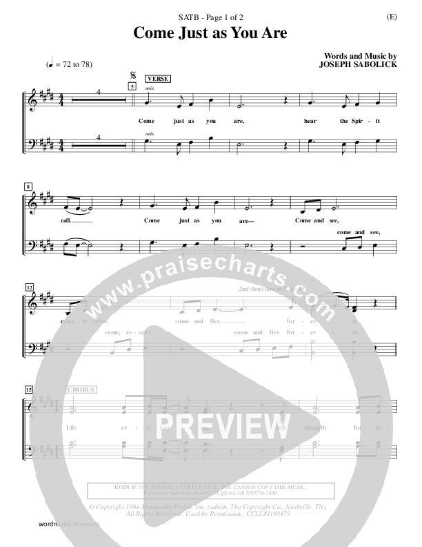 Download the Choir Sheet for Come Just As You Are by Joseph Sabolink, from the album Word Music Now. This song was arranged by David Winkler in the key of E, F.