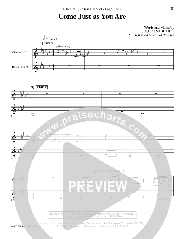 Download the Orchestration for Come Just As You Are by Joseph Sabolink, from the album Word Music Now. This song was arranged by David Winkler in the key of E, F.