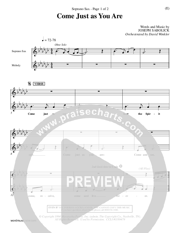 Download the Orchestration for Come Just As You Are by Joseph Sabolink, from the album Word Music Now. This song was arranged by David Winkler in the key of E, F.