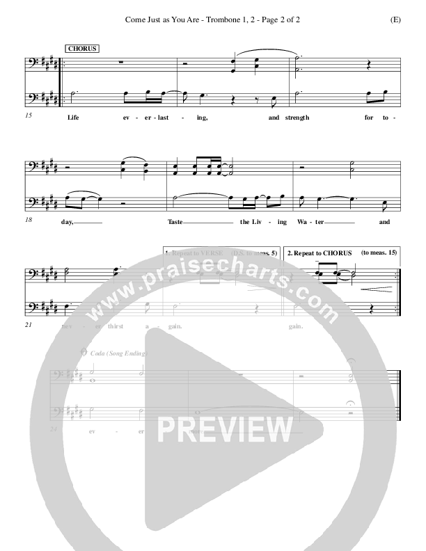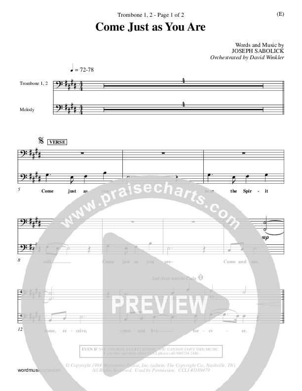 Download the Trombone 1,2 sheet music for Come Just As You Are by Joseph Sabolink, from the album Word Music Now. This song was arranged by David Winkler in the key of E, F.