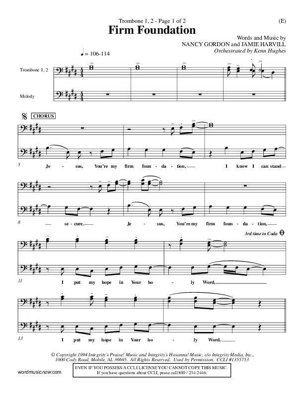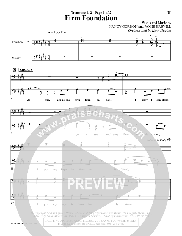 Download the Trombone 1,2 sheet music for Firm Foundation by Jamie Harvill, from the album Word Music Now.