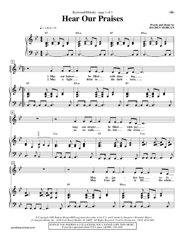 Download the sheet music for Hear Our Praises by Reuben Morgan, from the album Word Music Now.