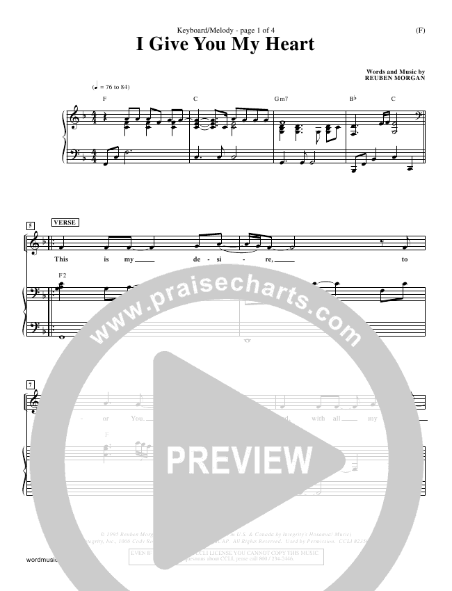 Download the Orchestration for I Give You My Heart by Reuben Morgan, from the album Word Music Now.