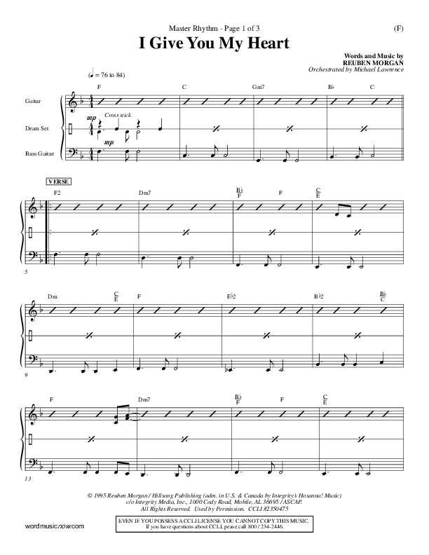 Download the Rhythm Chart for I Give You My Heart by Reuben Morgan, from the album Word Music Now.