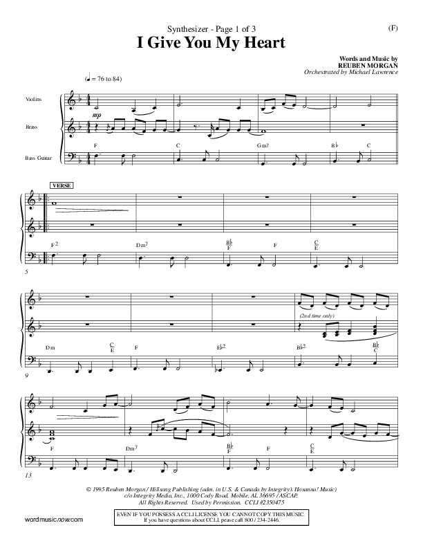 Download the Orchestration for I Give You My Heart by Reuben Morgan, from the album Word Music Now.