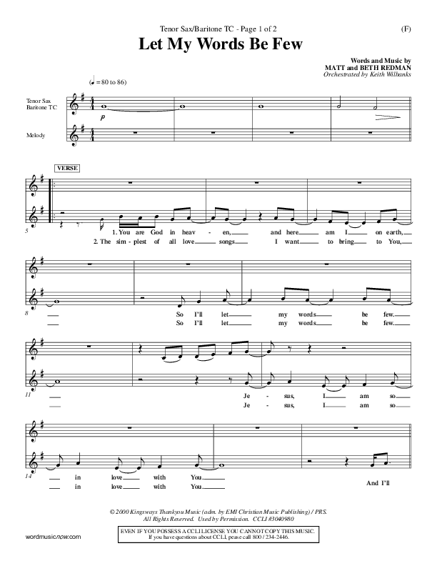 Download the Orchestration for Let My Words Be Few by Matt Redman, from the album Word Music Now.