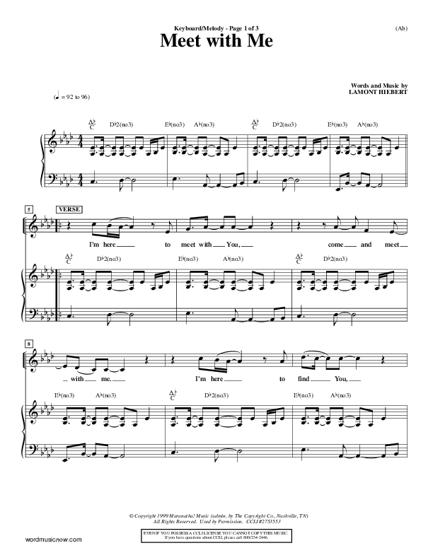 Download the sheet music for Meet With Me by Lamont Hiebert, from the album Word Music Now.