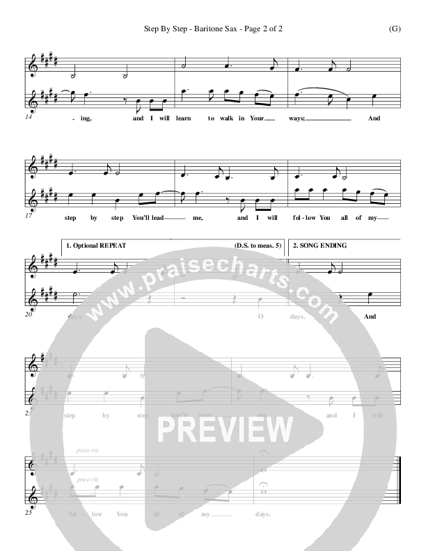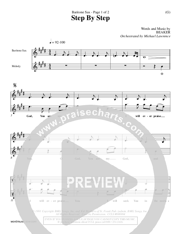 Download the Bari Sax sheet music for Step By Step by David Strasser, from the album Word Music Now. This song was arranged by Michael Lawrence in the key of F, G.