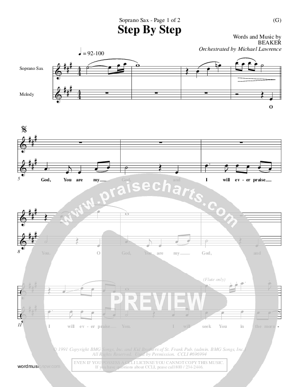 Download the Orchestration for Step By Step by David Strasser, from the album Word Music Now. This song was arranged by Michael Lawrence in the key of F, G.