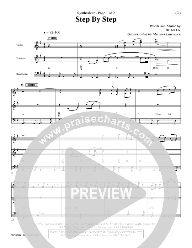 Download the Orchestration for Step By Step by David Strasser, from the album Word Music Now. This song was arranged by Michael Lawrence in the key of F, G.