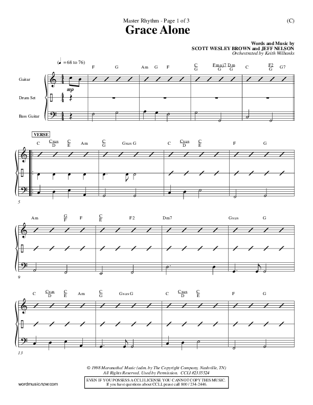 Download the Rhythm Chart for Grace Alone by Jeff Nelson, from the album Word Music Now.