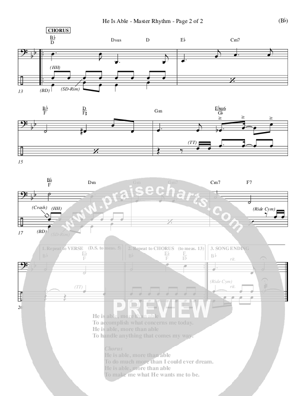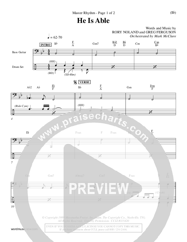 Download the Rhythm Chart for He Is Able, from the album Word Music Now.