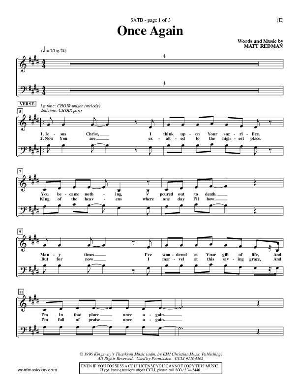 Download the Choir Sheet for Once Again by Matt Redman, from the album Word Music Now.