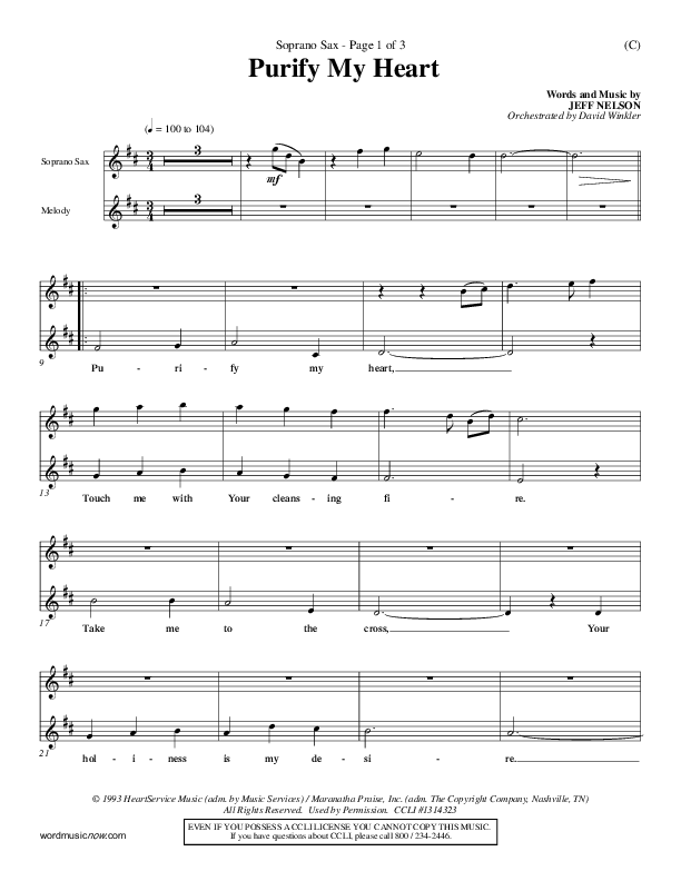 Download the Orchestration for Purify My Heart by Jeff Nelson, from the album Word Music Now.