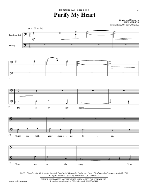Download the Trombone 1,2 sheet music for Purify My Heart by Jeff Nelson, from the album Word Music Now.