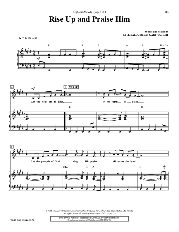 Download the sheet music for Rise Up and Praise Him by Paul Baloche, from the album Word Music Now.