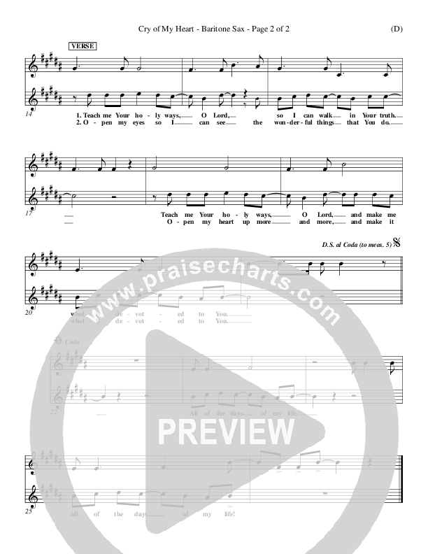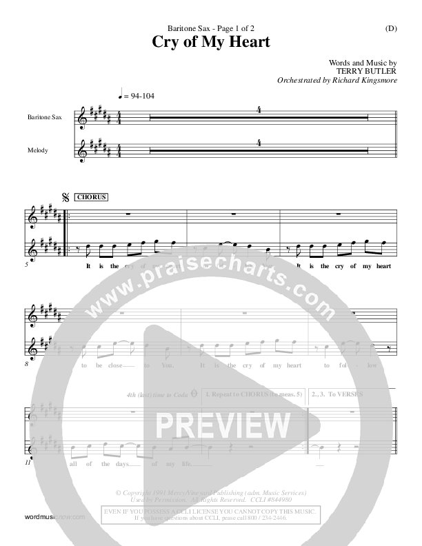 Download the Bari Sax sheet music for Cry of My Heart by Terry Butler, from the album Word Music Now.
