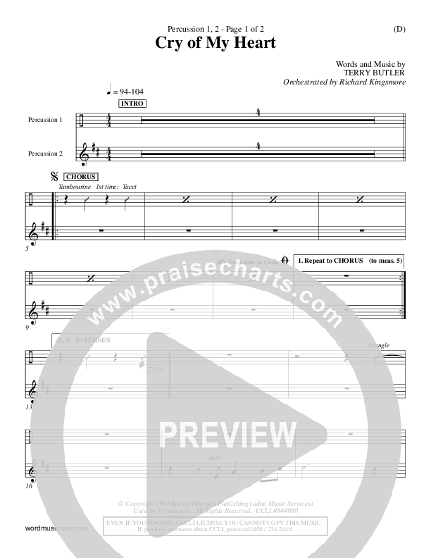 Download the Orchestration for Cry of My Heart by Terry Butler, from the album Word Music Now.