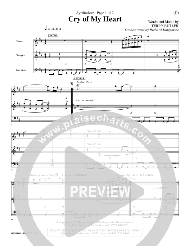 Download the Orchestration for Cry of My Heart by Terry Butler, from the album Word Music Now.