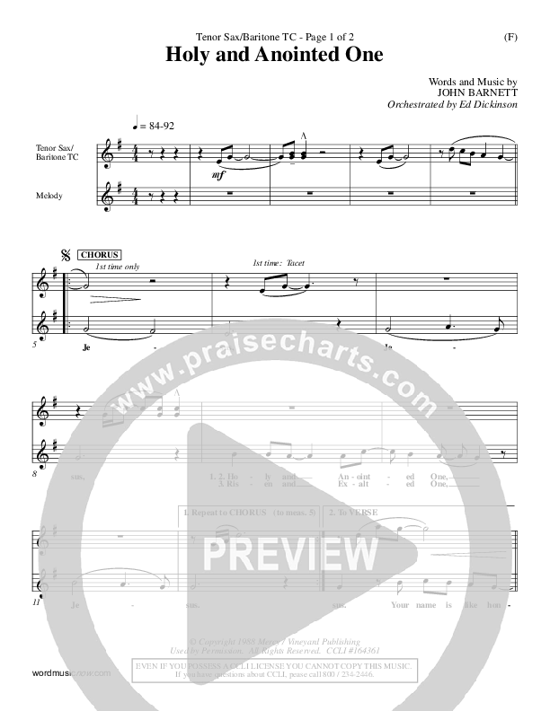 Download the Orchestration for Holy And Anointed One by John Barnett, from the album Word Music Now.